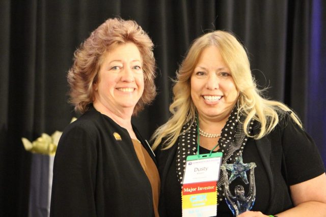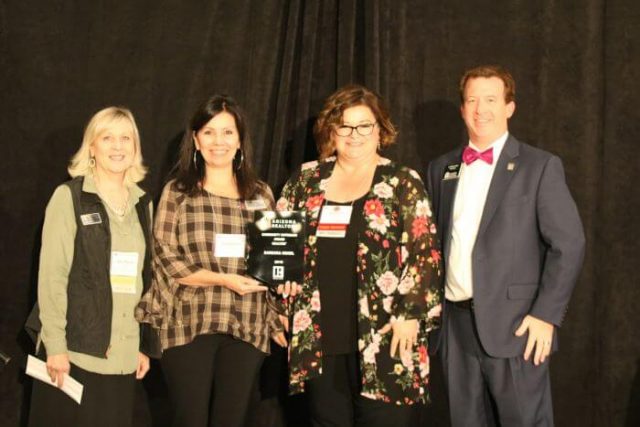 Arizona REALTORS® 2017 President Paula Monthofer presents the Community Outreach Local Association Award to James Adams, who accepted on behalf of the Sedona Verde Valley Association of REALTORS® for the ongoing work its members are doing at the Verde Valley Military Service Park.