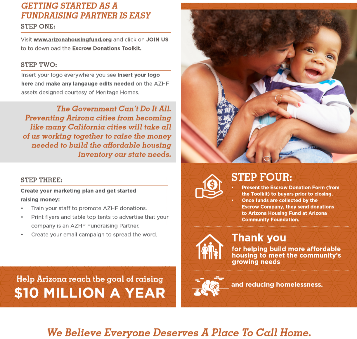 The Arizona Housing Fund is a dedicated-sustainable revenue source that grants funding to the nonprofit agencies that build and operate Permanent Supportive, Low-Income and Working Poor Housing further enabling more units to meet the growing needs of our communities and reduce homelessness.
