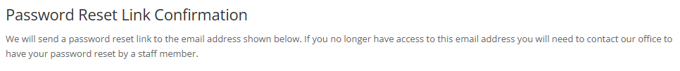 If you do have an account, you will be directed to have a Password Reset Link sent to your email address on file. If your email and username appear correct, click “Continue” to have your Password Reset Link emailed to you.