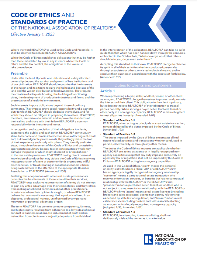 The Code ensures that consumers are served by requiring REALTORS® to cooperate with each other in furthering clients’ best interests.